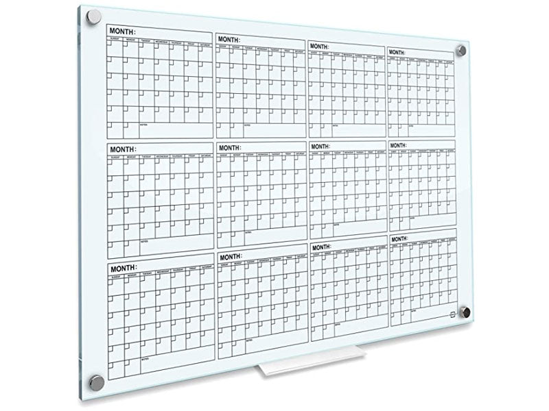 Glass Yearly Planner Whiteboard 34″x46″ with Marker Tray | Perfect
