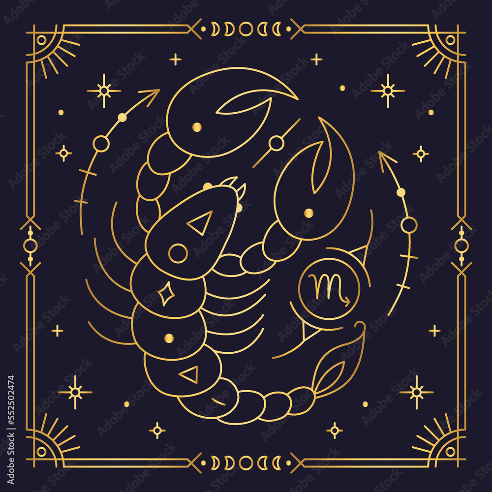 Scorpio zodiac astrological horoscope golden sign dark navy card